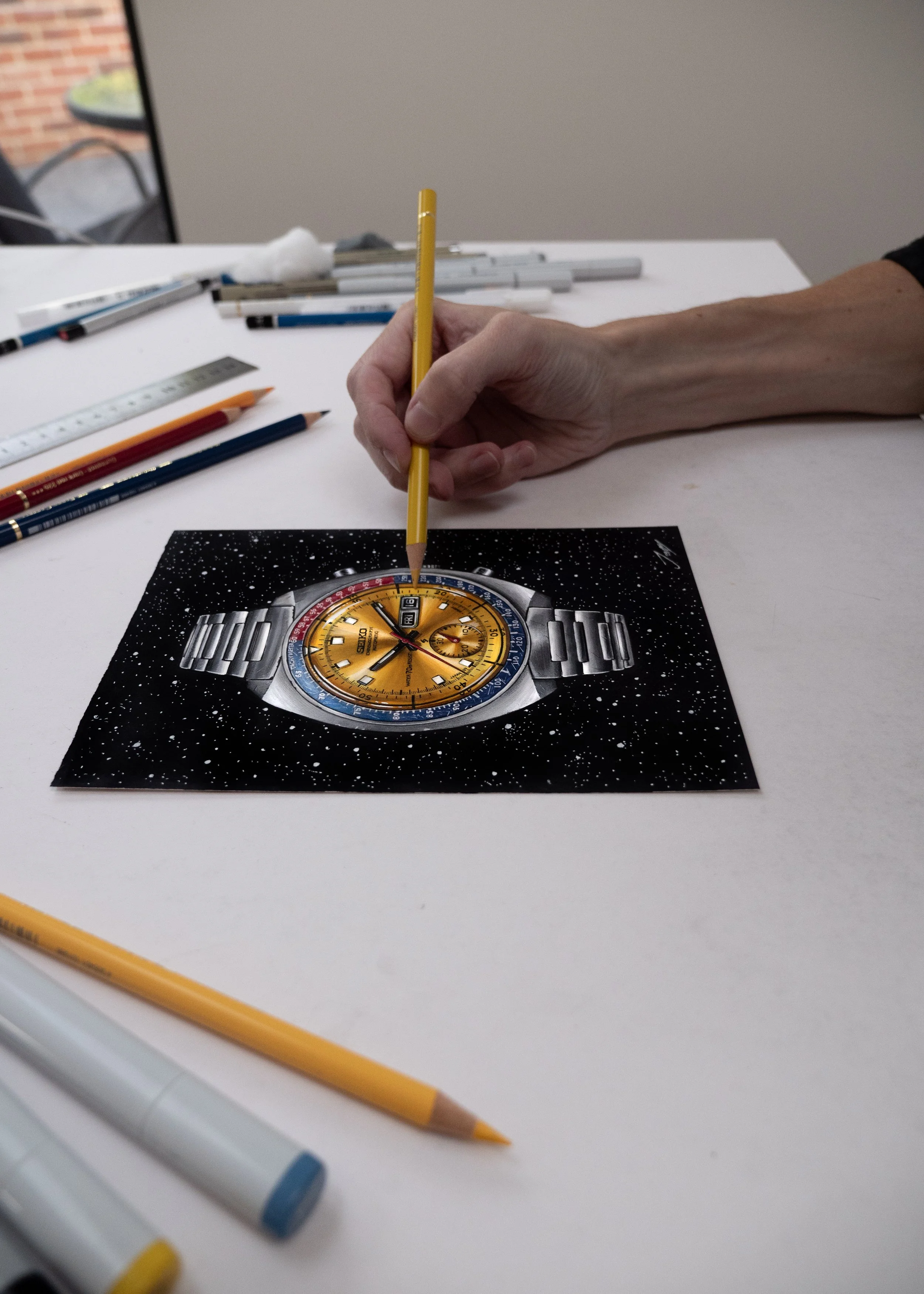 “There’s something immensely satisfying about watching James’ process live or on video. The works are so detailed that it’s a bit like watching a high-wire act — one slip of the pencil and hours of work could be lost. And if you’re into ASMR, there’s the gratifying sound of perfectly sharpened pencil lead scritching against the tooth of the Arches paper.”